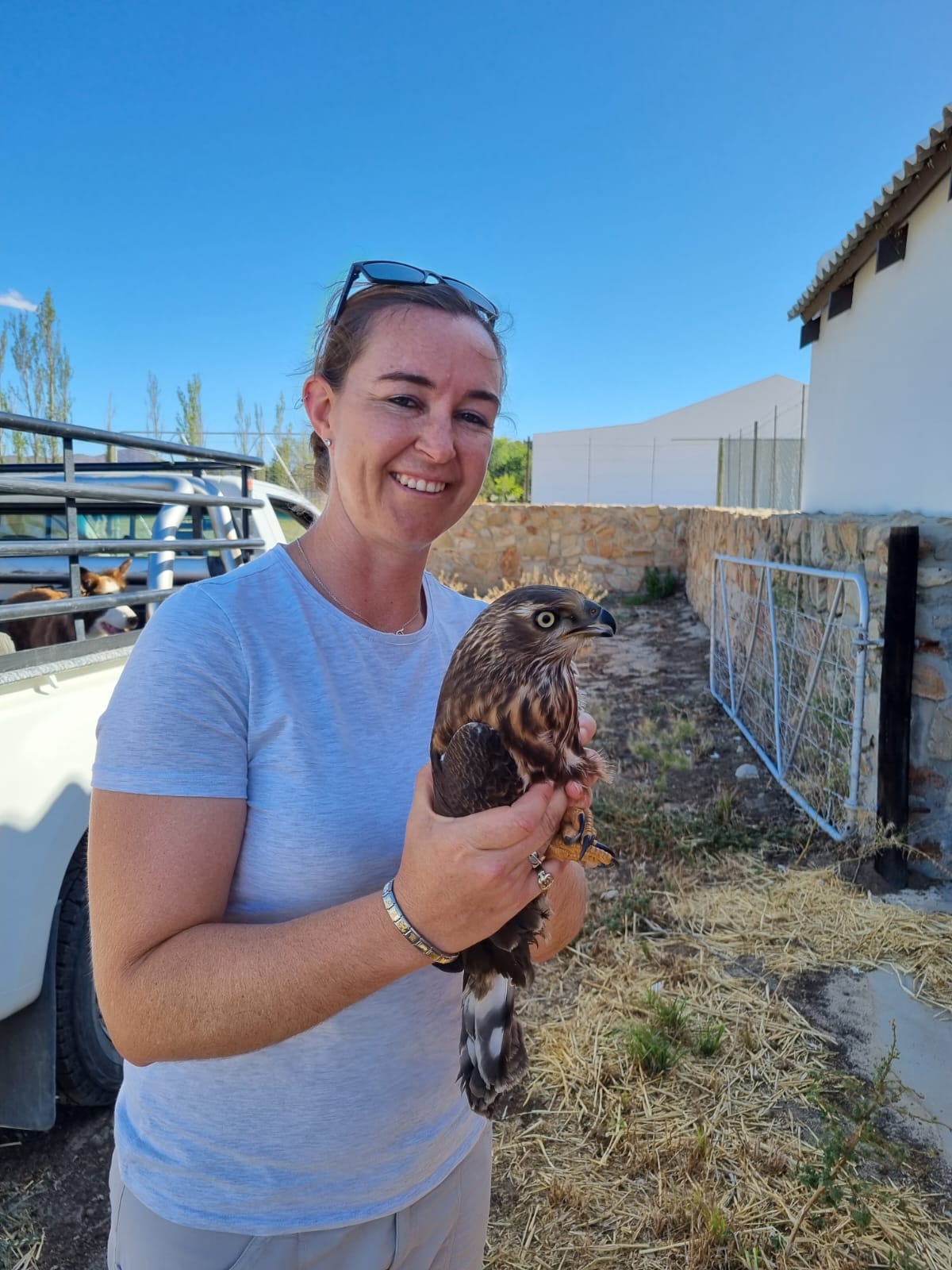 Nimbus, a Pale Chanting Goshawk, was sent to our centre from a farm in Montagu as a juvenile. When a concerned member of the public became aware of his situation, Melissa Whitecross quickly stepped in to ensure he could be safely transported to us for proper care.